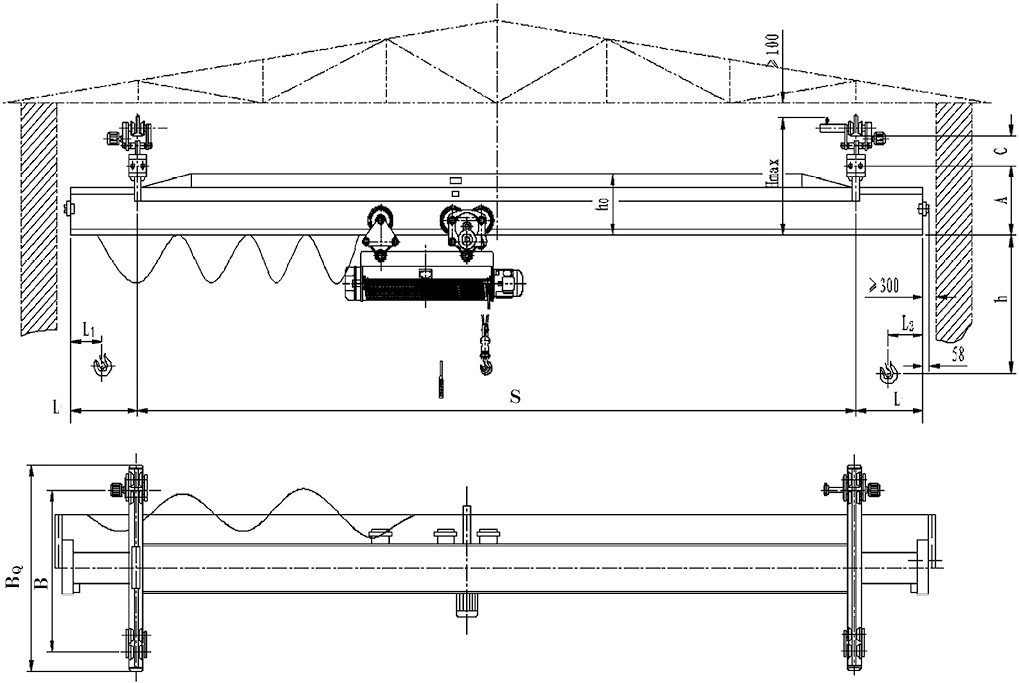 本機(jī)適用于工廠、倉(cāng)庫(kù)建筑物軌面到屋架下弦高度≤500mm的場(chǎng)所。小車(chē)采用配套電動(dòng)葫蘆。結(jié)構(gòu)靈活,運(yùn)行安全可靠。如跨度有特殊要求,我公司可非標(biāo)設(shè)計(jì)制造。