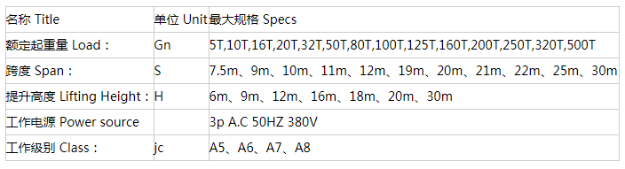 QD型雙梁橋式起重機技術(shù)規(guī)格表: